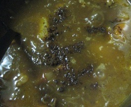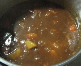 こちらは辛口のルーを入れる前に煮込んだ物を他の小さい鍋に移し入れて少量だけ味見程度に作ってみました。